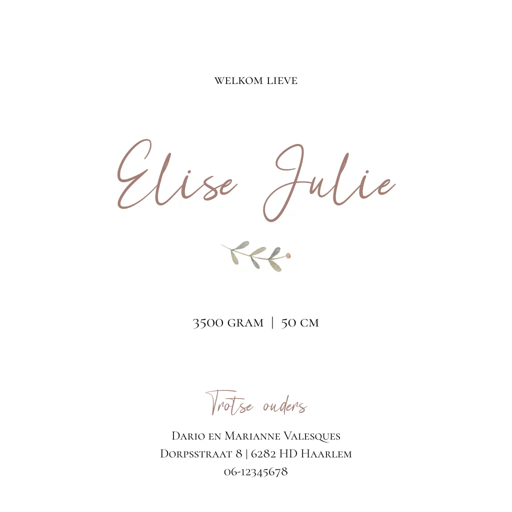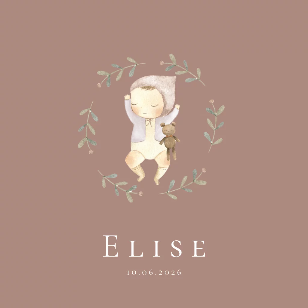 Geboortekaartje baby meisje mozesmandje blaadjes