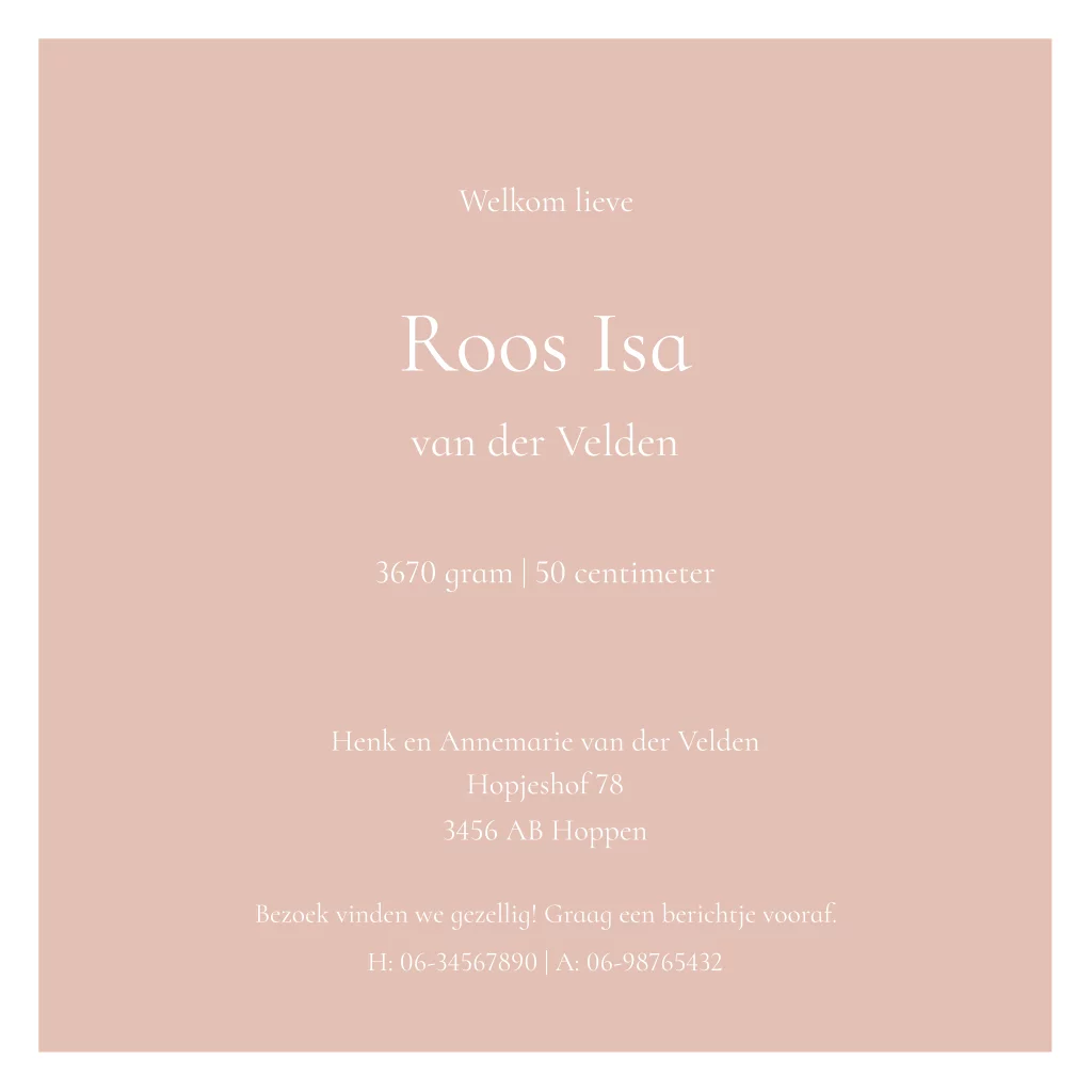 Geboortekaartje baby meisje vierkant