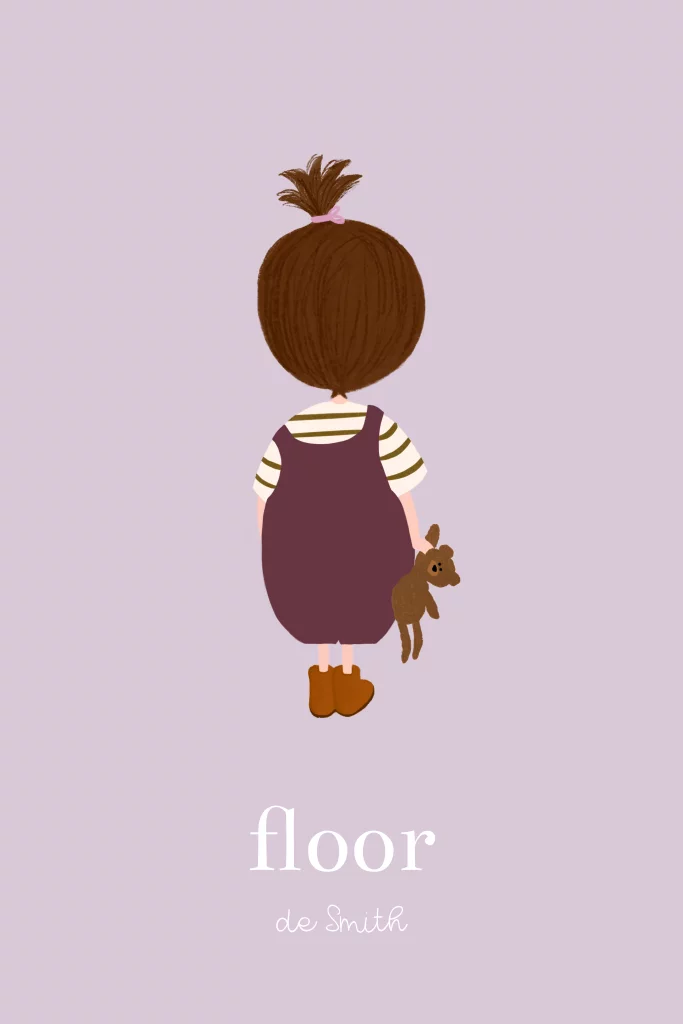 Een minimalistisch geboortekaartje met een klein meisje met bruin haar en een knuffel beertje in haar hand. Kindjes met een andere haarkleur en haarsoort vind je bij de afbeeldingen onder 'kindjes'. Staat jouw kindje er niet tussen? Mail ons dan voor een aanpassing op maat!