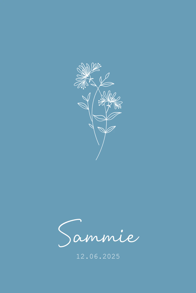 Geboortekaartje met de geboortebloem van de maand juni. In de beeldbank vindt je op volgorde van de maanden 2 soorten bloemen per maand.