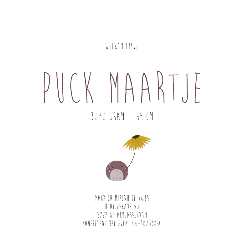 Geboortekaartje grappige illustratie lieveheersbeestje zonnebloem