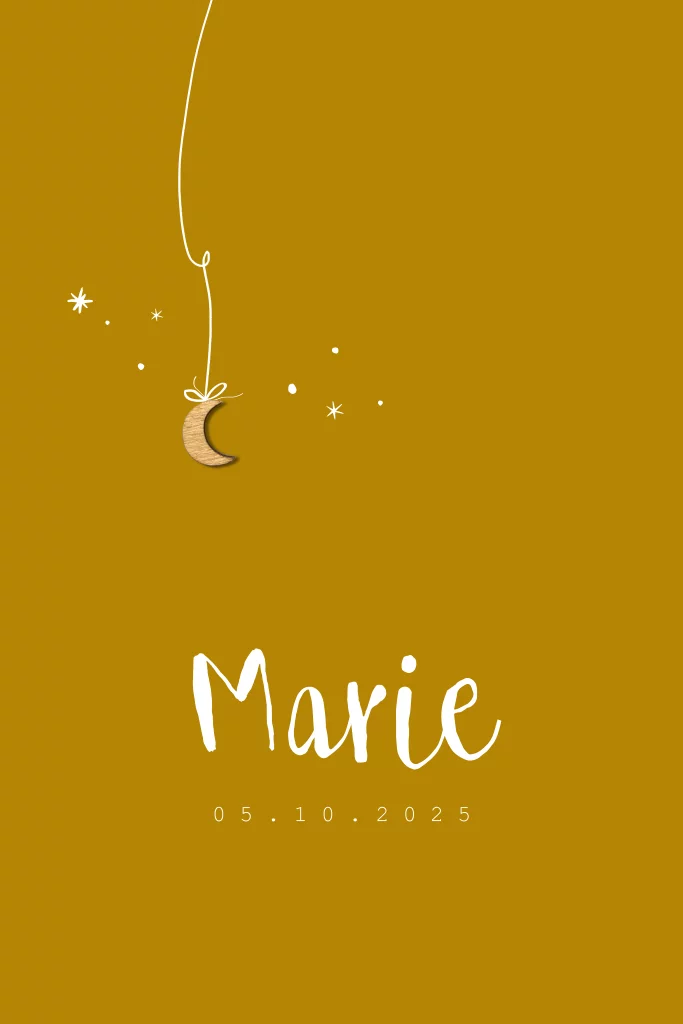 Geboortekaartje houten maan oker