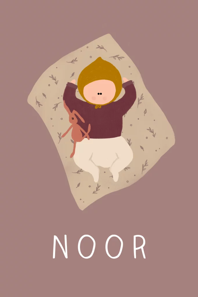 Geboortekaartje illustratie baby meisje kleedje knuffel