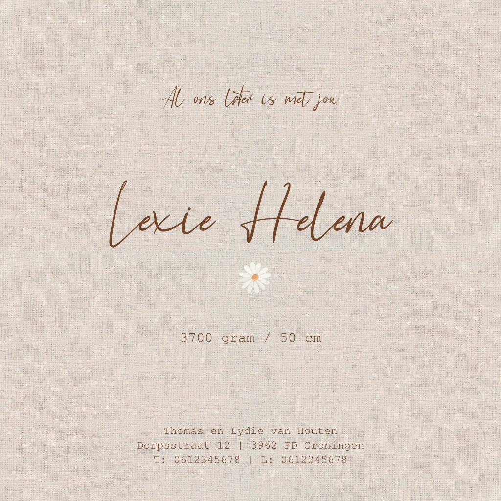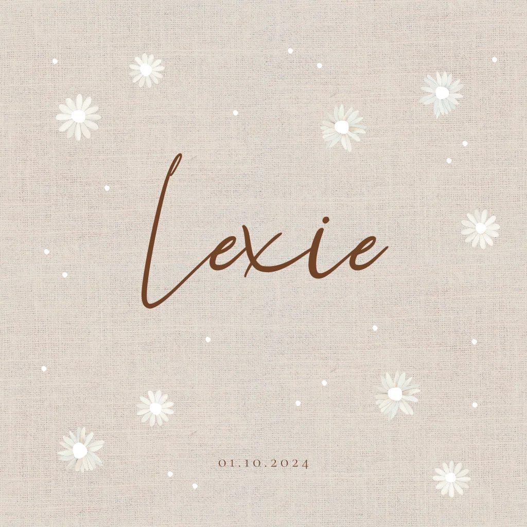 Geboortekaartje linnen look madeliefjes