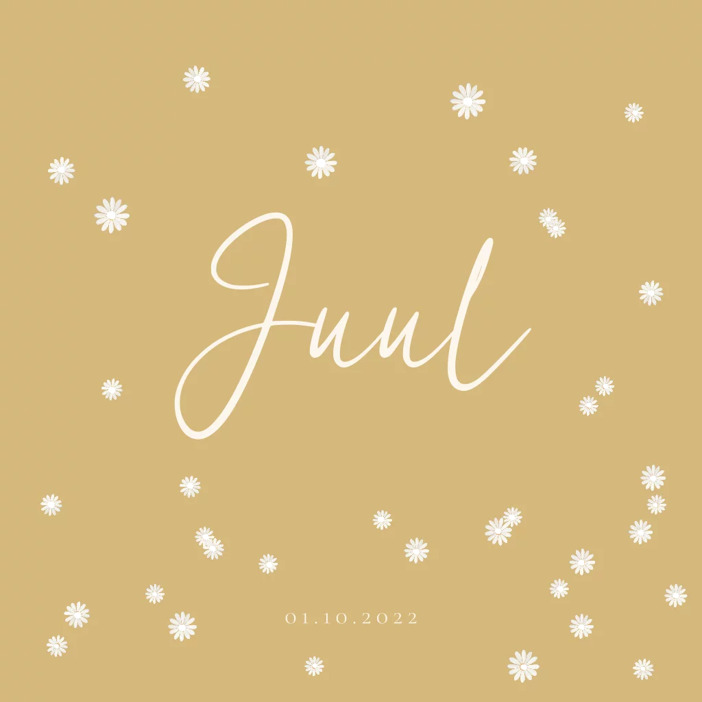 Geboortekaartje met zoete madeliefjes. De knopjes van de bloemetjes staan in goudfolie. Een zoet kaartje voor een pasgeboren meisje!