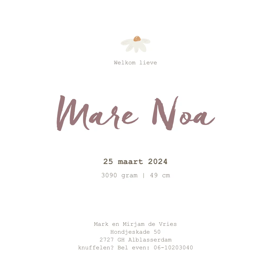 Geboortekaartje madeliefjes paars