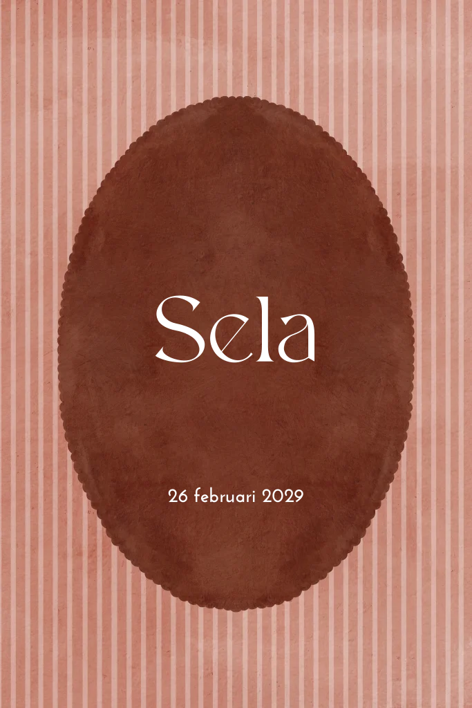 Hip geboortekaartje voor een meisje in boho eclectische stijl. Met roudroze kleuren en fijne streepjes. De naam op de voorzijde staat in goudfolie.