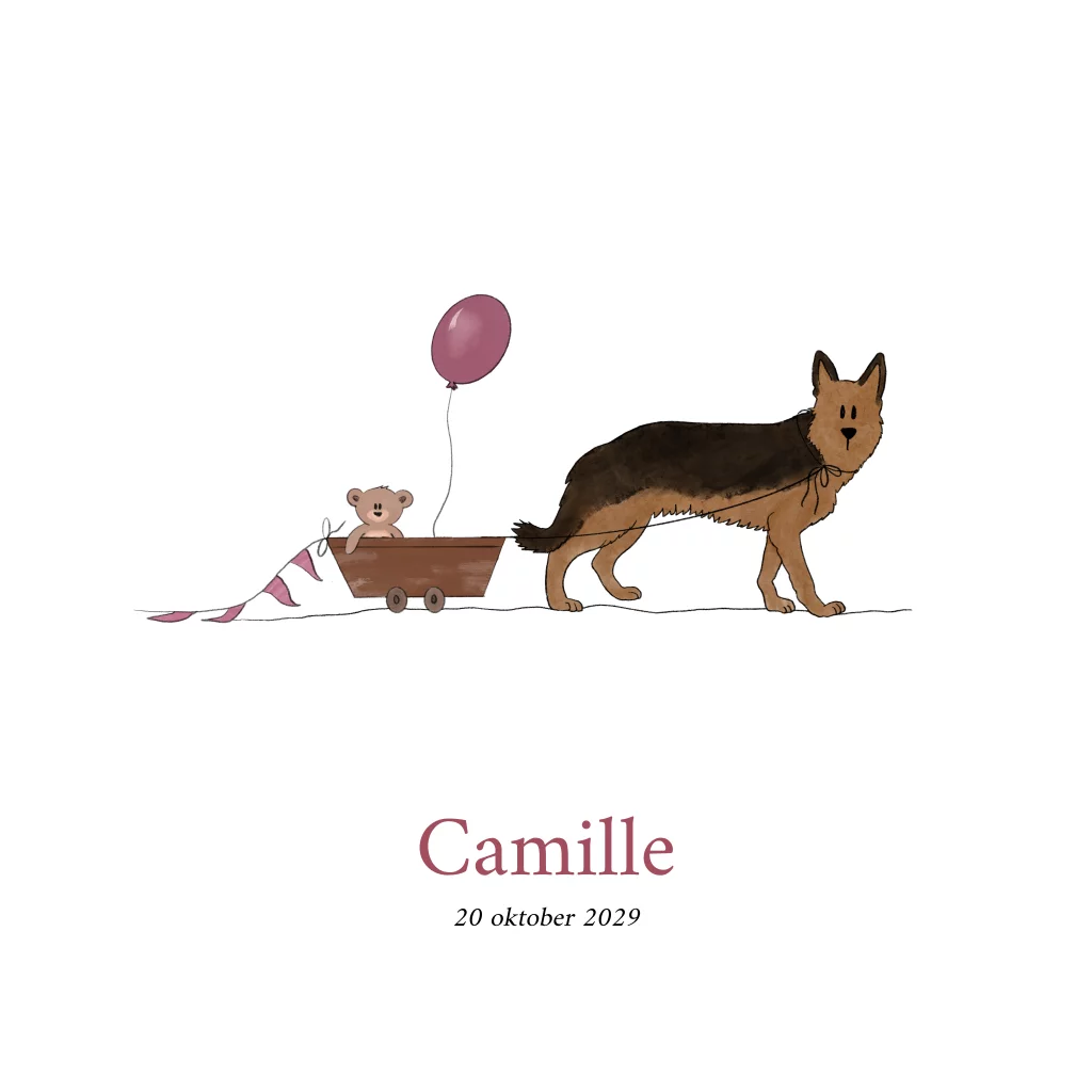 Geboortekaartje meisje huisdier herdershond bolderkar