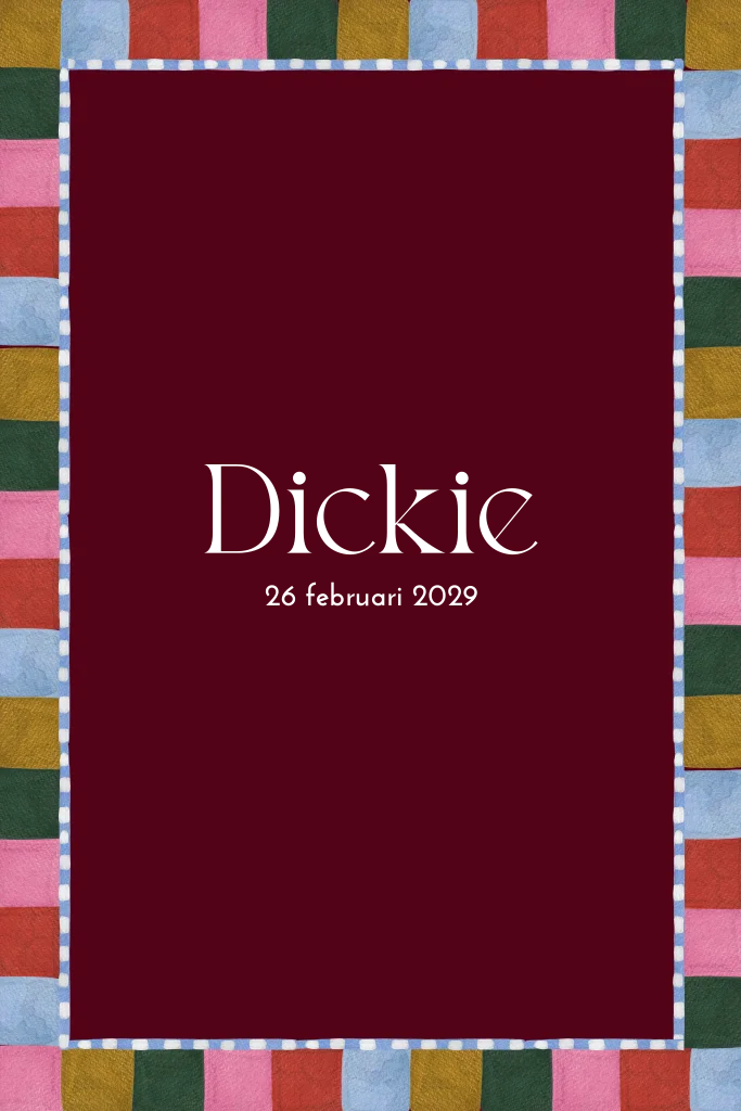Hip geboortekaartje voor een meisje in boho eclectische stijl. Met gekleurd geblokt frame. De naam op de voorzijde staat in goudfolie.