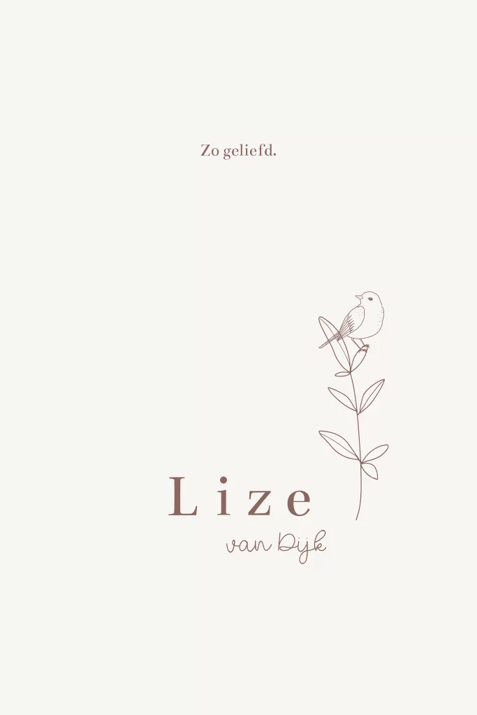 Een minimalistisch geboortekaartje met een lief vogeltje op een takje.