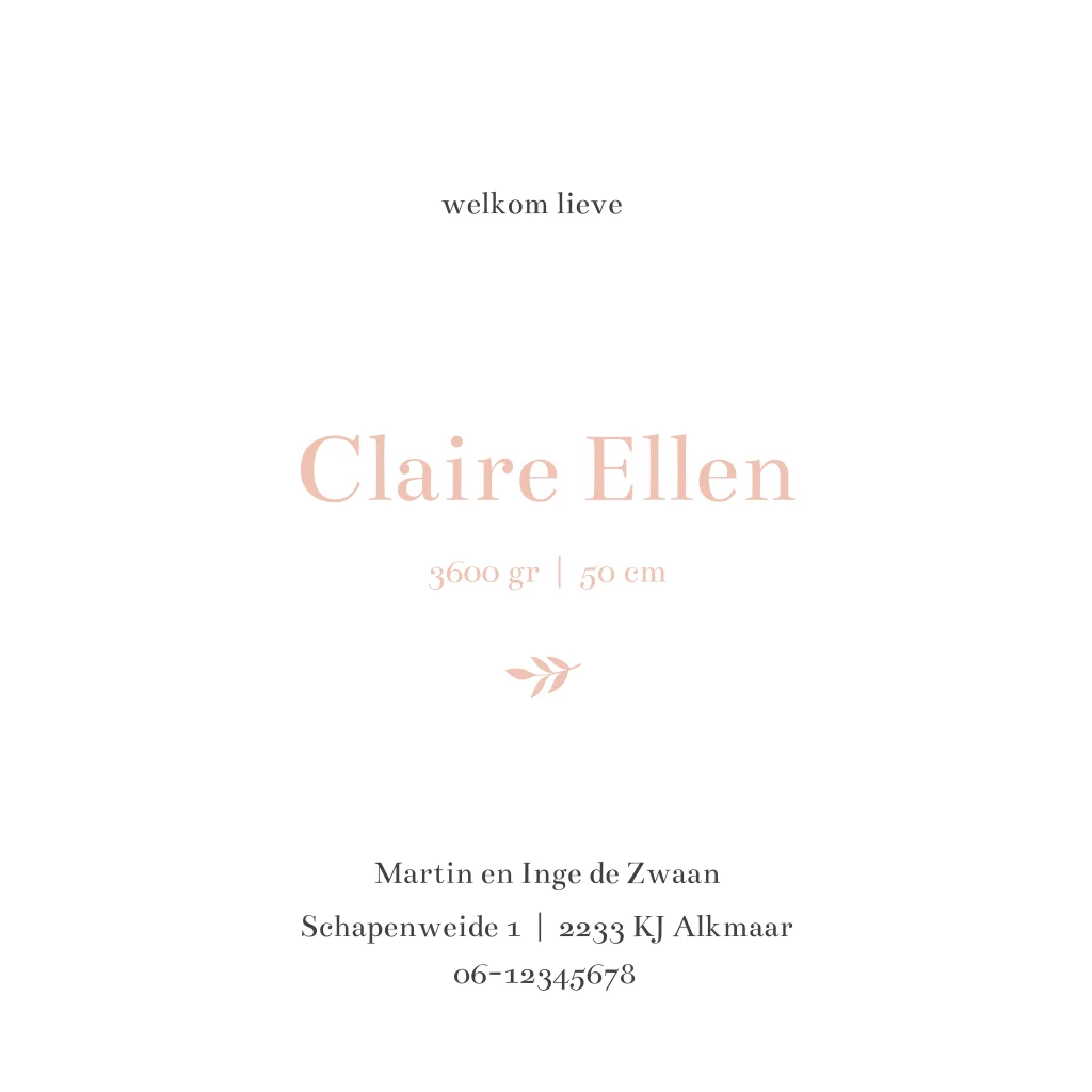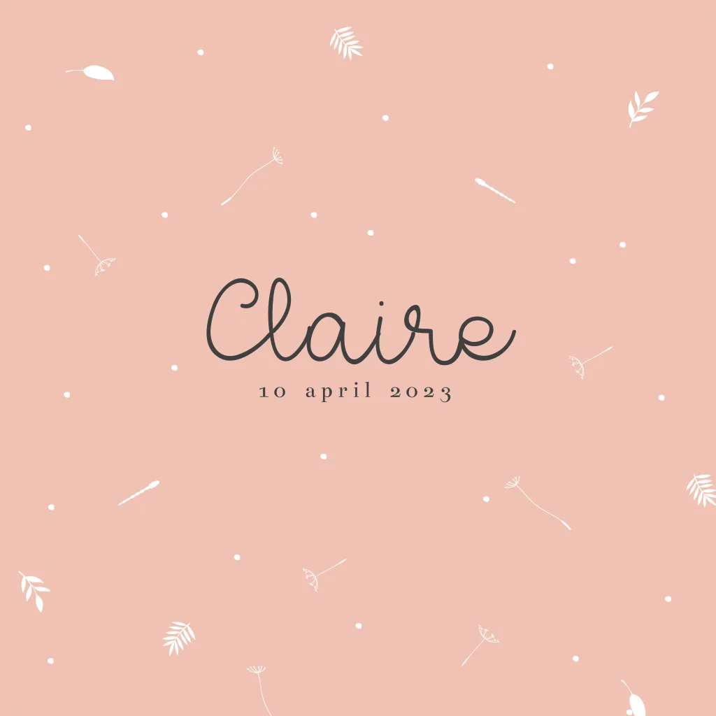 Geboortekaartje roze met libelles, bloemetjes en blaadjes