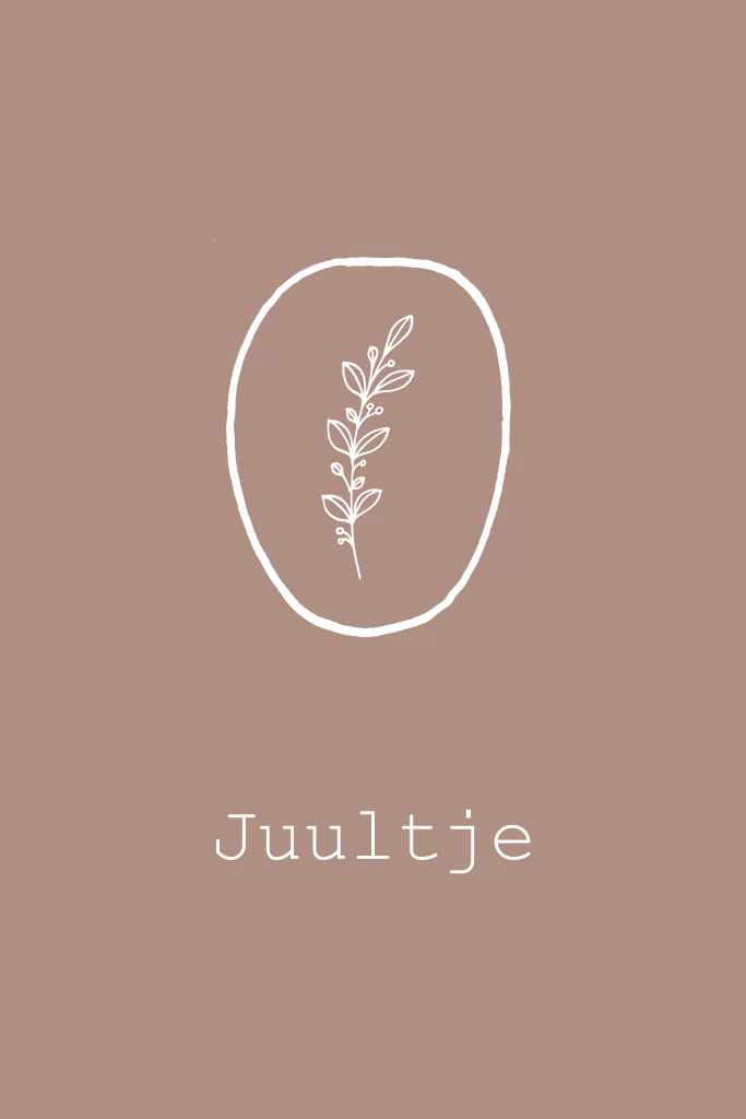 Een minimalistisch geboortekaartje een takje in een cirkel. De voorzijde is gedrukt in goudfolie. Onze tip om deze kaart te drukken op linnen papier.