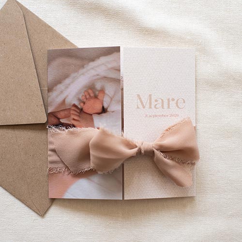 - Marloes“Ruime keuze uit geboortekaartjes die passen bij het seizoen, heel fijn dat je ze zelf kan aanpassen naar smaak. We hadden alles klaar staan en hoefde alleen nog geboorteinfo aan te passen. Daardoor waren de kaartjes al op dag 3 na de geboorte in huis! Superfijn.”