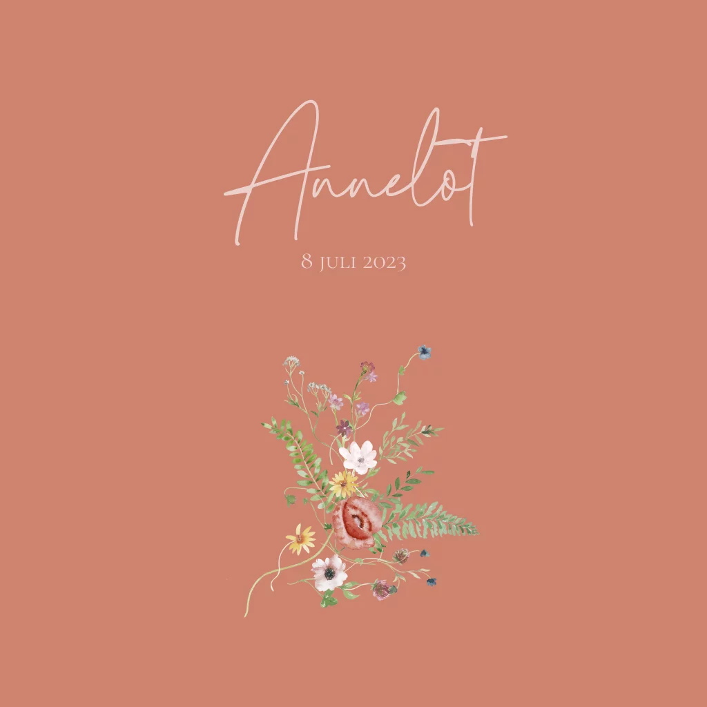 Vierkant geboortekaartje met zomerse bloemen en ronde hoeken