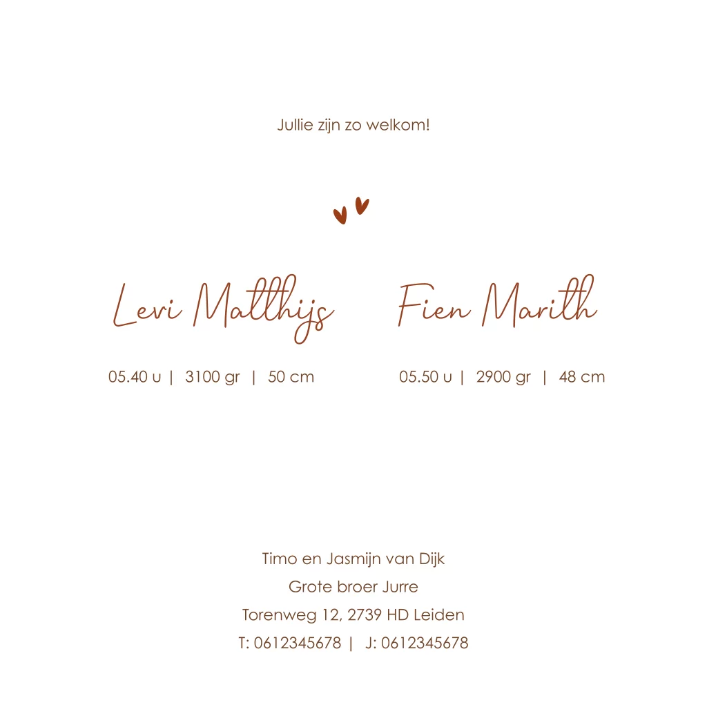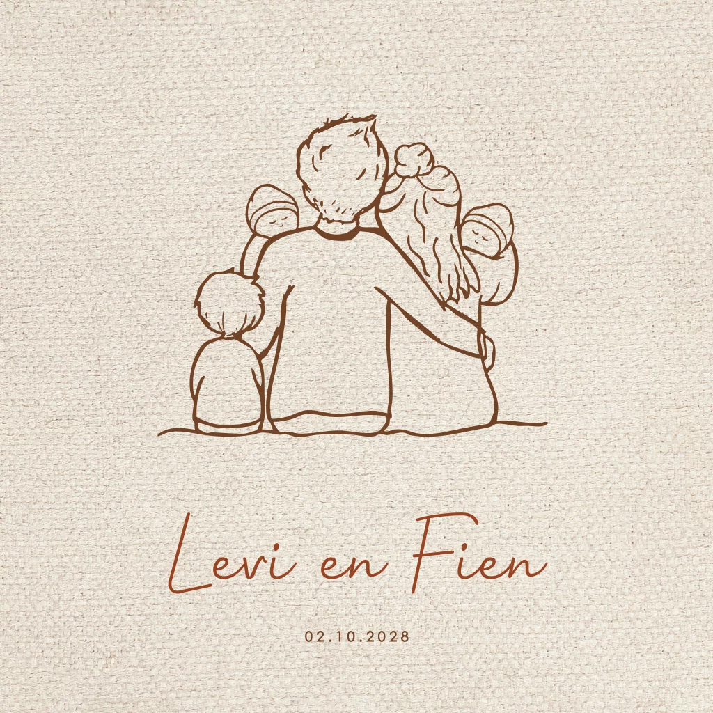 Geboortekaartje lijntekening gezin broer tweeling linnen look