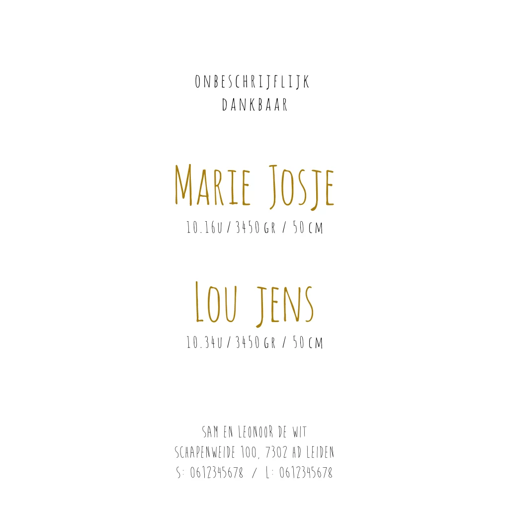 Grappig geboortekaartje van een tweeling met een nieuwsgierig broertje/ zusje