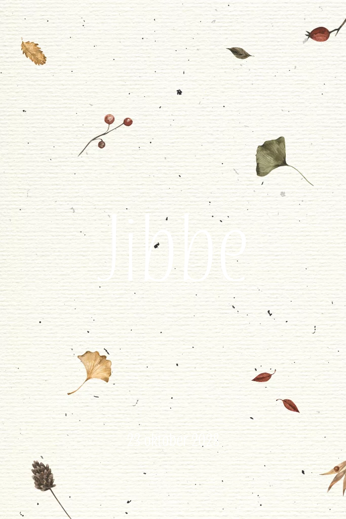 Geboortekaartje met takjes, besjes en blaadjes in warme tinten. Dit geboortekaartje is perfect voor de herfst en winter baby's. Bij dit kaartje adviseren we Oud Hollands papier voor een extra mooi effect van de achtergrond.