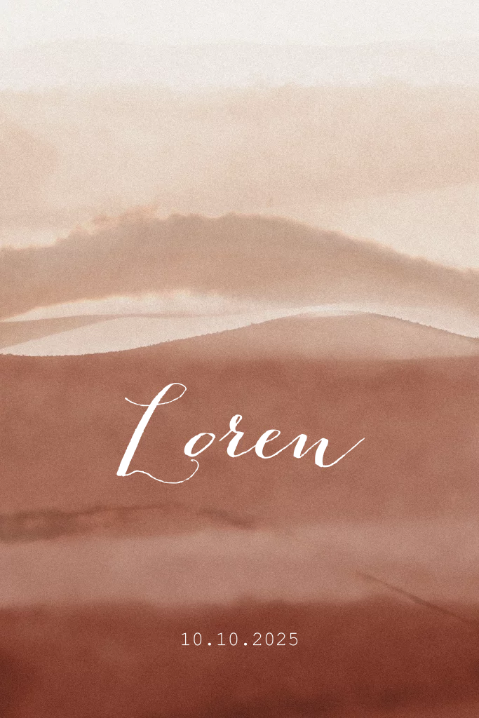 Een minimalistisch geboortekaartje bergen in verschillende bruine tinten. De gegevens op de voorzijde staan in goudfolie voor een mooi contrast!