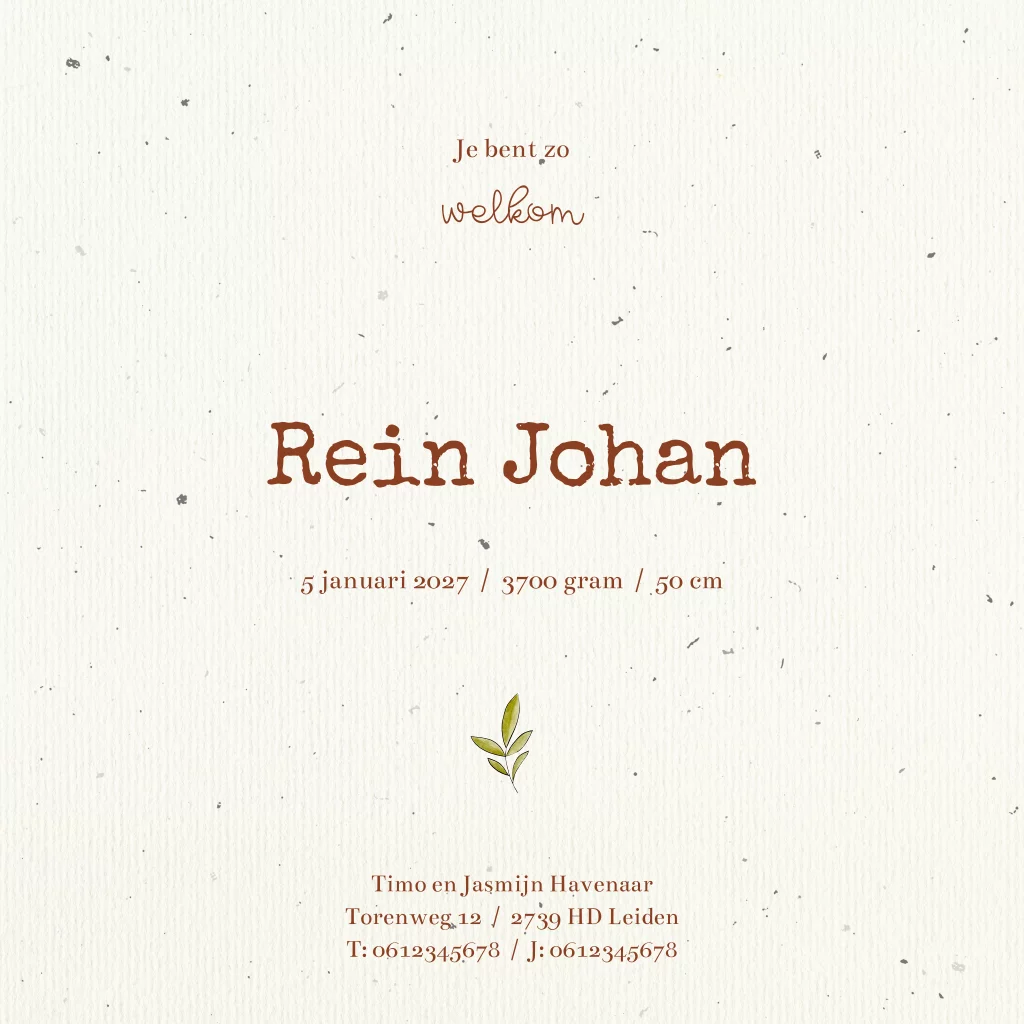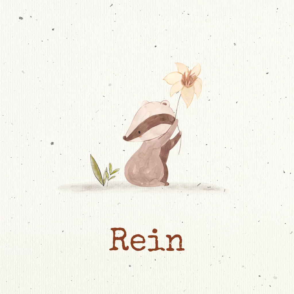 Een lief geboortekaartje met een klein dasje en in zijn handjes een vrolijke bloem. Een unisex geboortekaartje voor ieder kleintje!