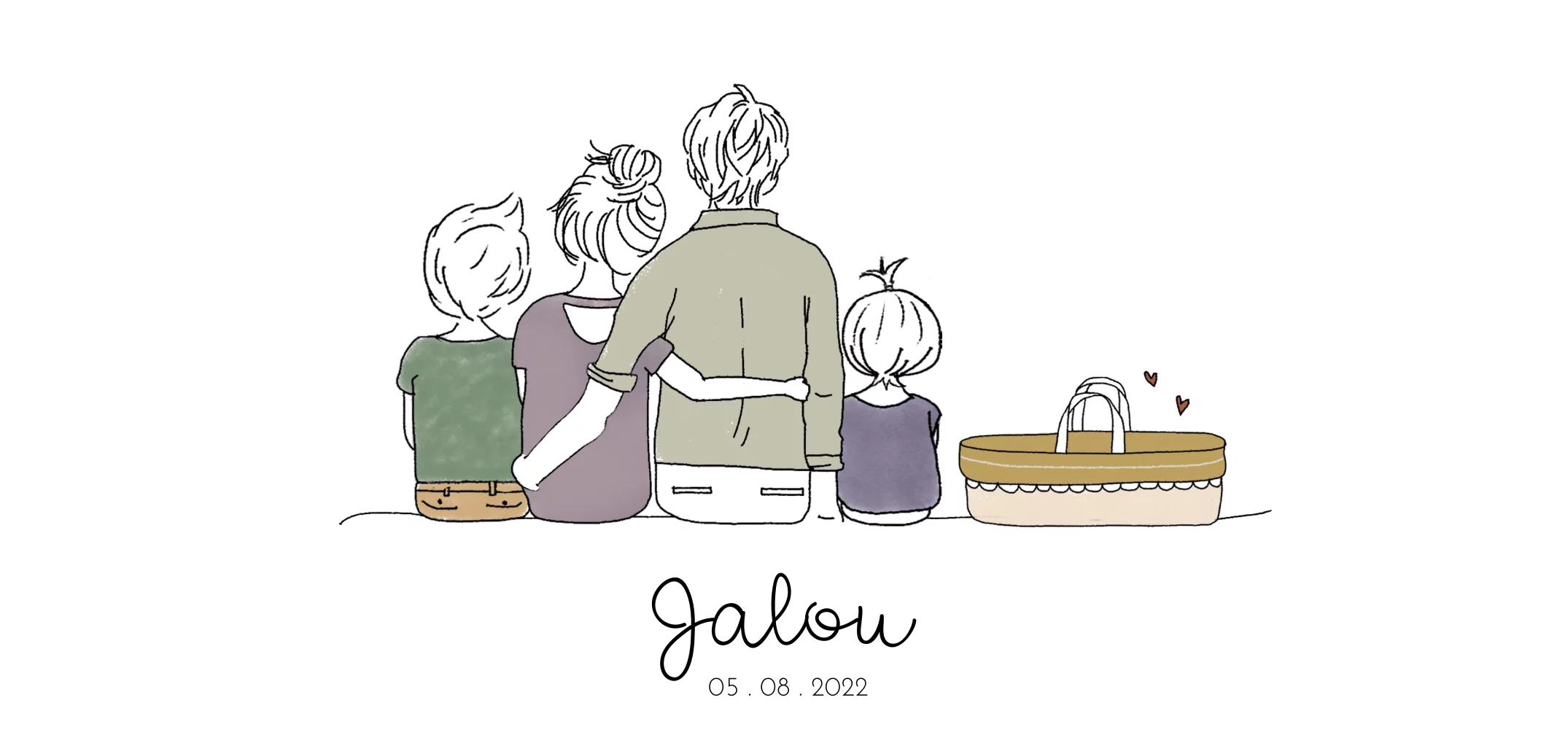 Geboortekaartje met een gezin in pastel kleuren. Staat jouw gezinscombinatie er niet bij? Stuur dan een mailtje naar info@studiodijs.nl en wij maken hem op maat!