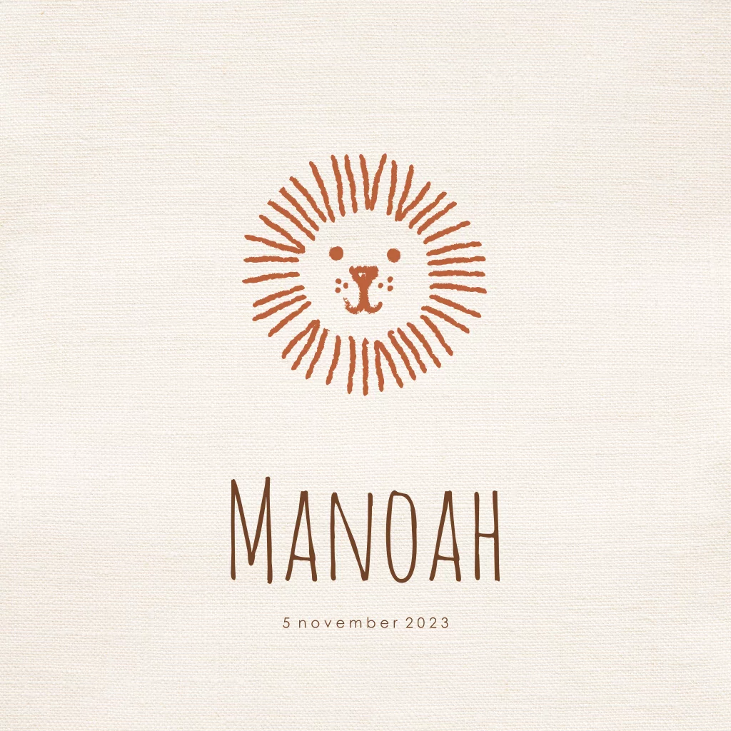 Een lief geboortekaartje met een linnen achtergrond en een schattige leeuwenkop.