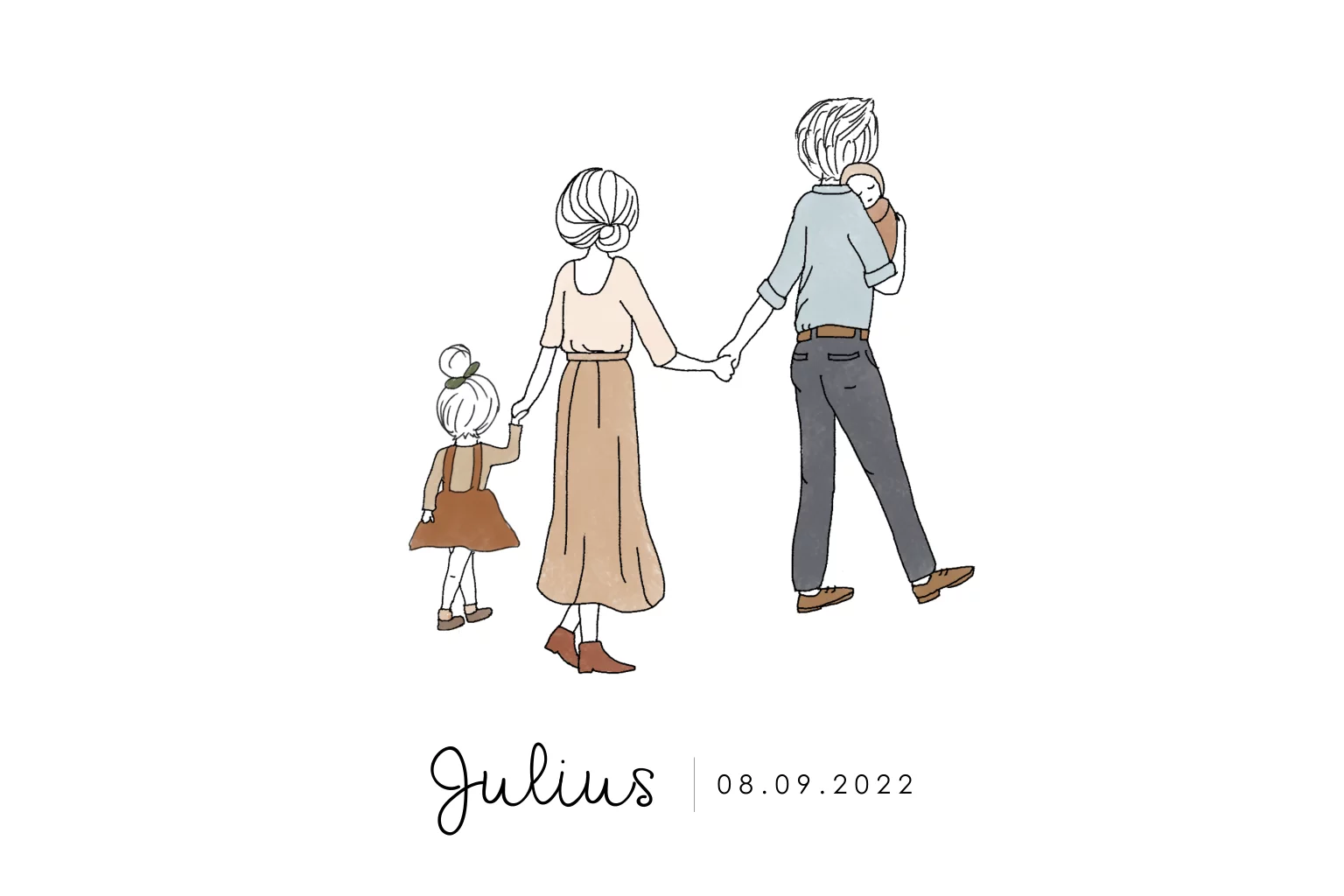 Geboortekaartje illustratie gezin met 2 kinderen