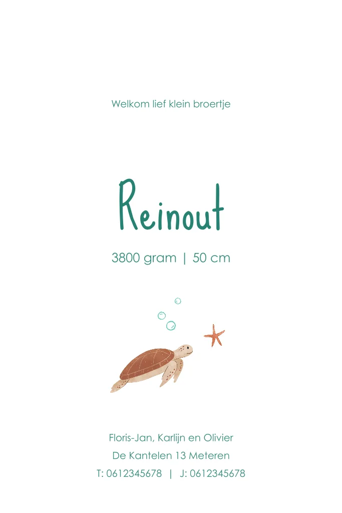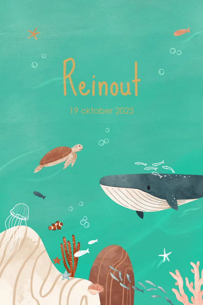 Geboortekaartje oceaan walvis schildpad visjes koraal