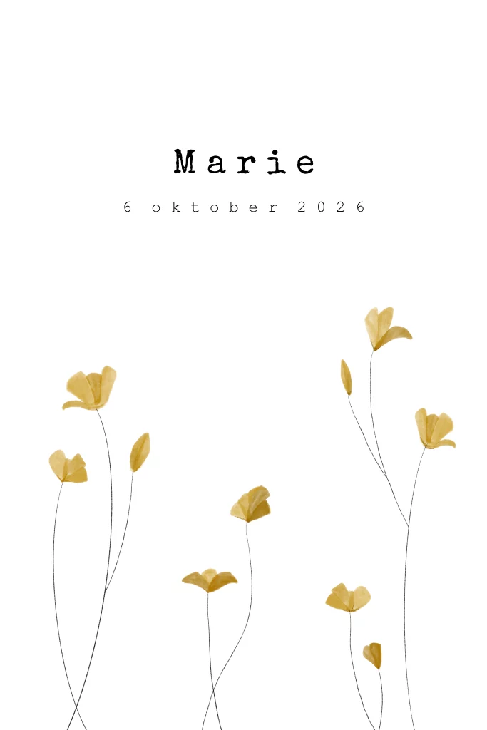 Een minimalistisch geboortekaartje met okergele bloemen