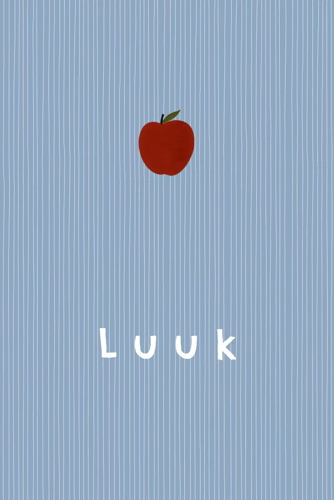 Geboortekaartje met een fijn streepjes patroon en een vrolijk appeltje. De naam staat in goudfolie. Dit kaartje is erg mooi op linnen papier.