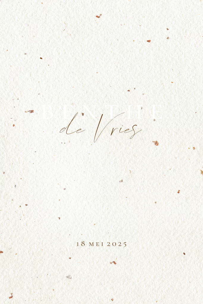 Een minimalistisch geboortekaartje met een fijne structuur achtergrond. Op de voorzijde staat de naam in goudfolie voor een prachtig effect!