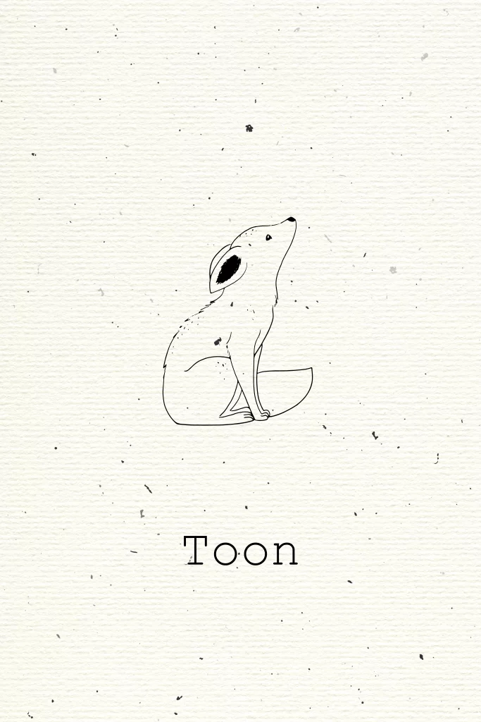 Een minimalistisch geboortekaartje met gevlekt papier en een lieve illustratie van een vos. Bij dit kaartje adviseren we Oud Hollands papier voor een extra mooi effect van de achtergrond.
