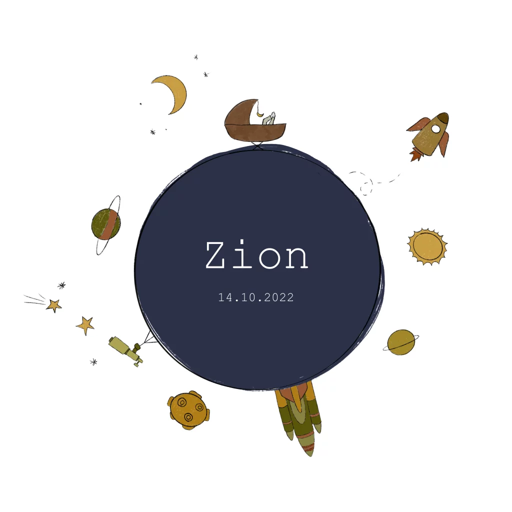 Geboortekaartje wereldbol ruimte raket maan sterren