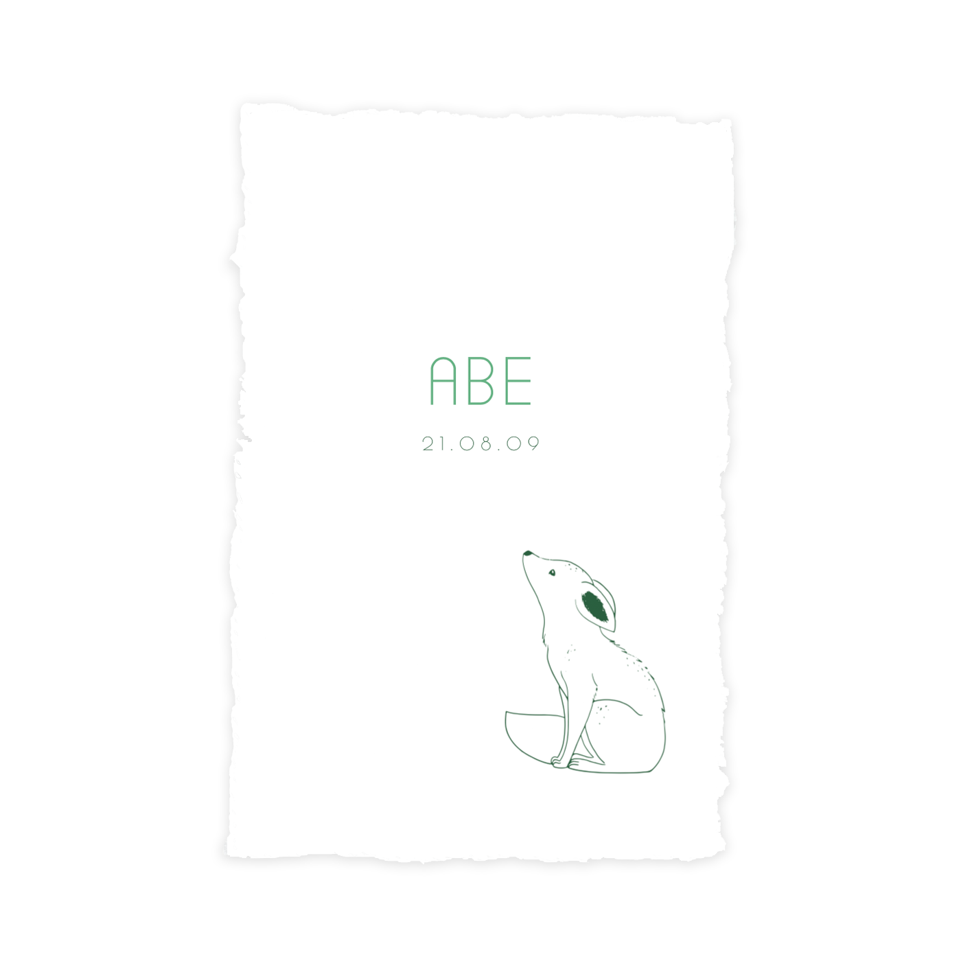 Geboortekaartje met unieke scheprand look en een vosje in lijntekening