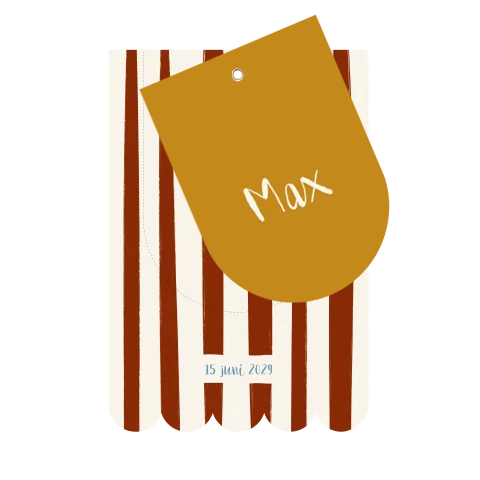 Geboortekaartje jongen label kleurrijk strepen okergeel terracotta