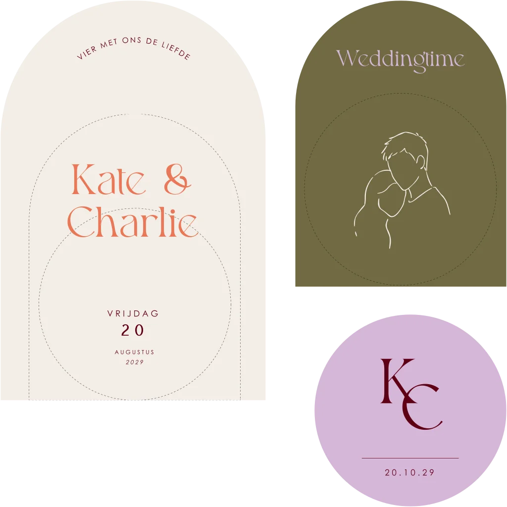 Namen, datum, locatie en overige teksten kunnen volledig worden gepersonaliseerd.