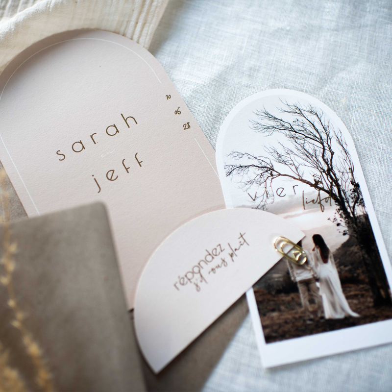 Trouwkaarten set boogvorm foto
