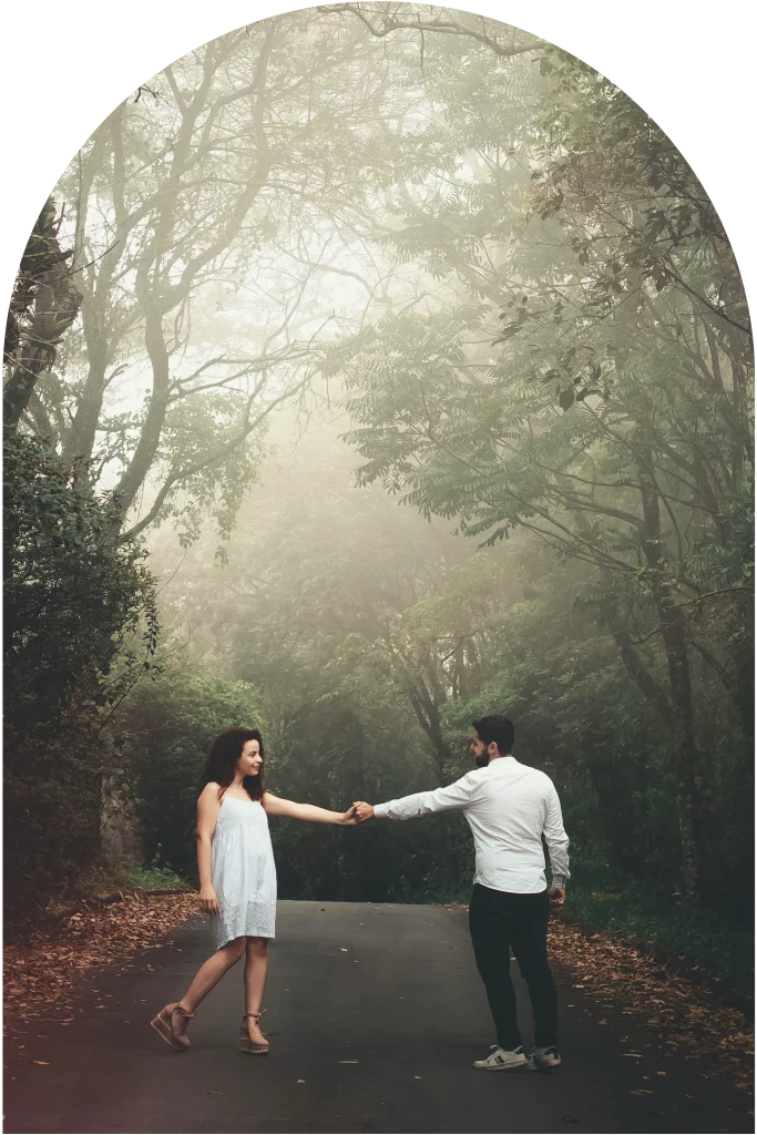 Maak zelf een trouwkaart met foto. Deze fotokaart heeft een originele boogvorm. Vervang de foto eenvoudig in de online ontwerptool en vul de rest van de kaart aan met kleuren, tekst en afbeeldingen.