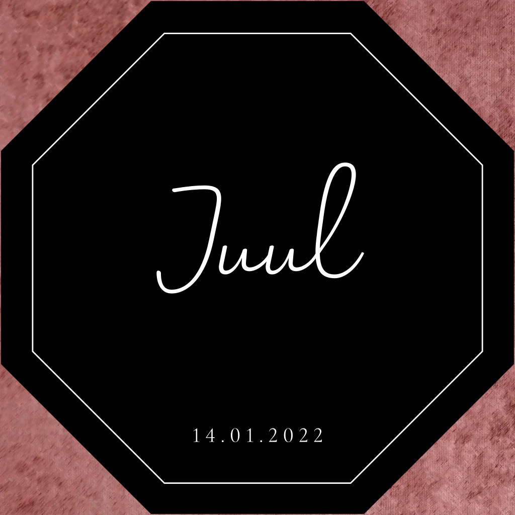 Geboortekaartje achthoek velours roze met goudfolie op de voorzijde