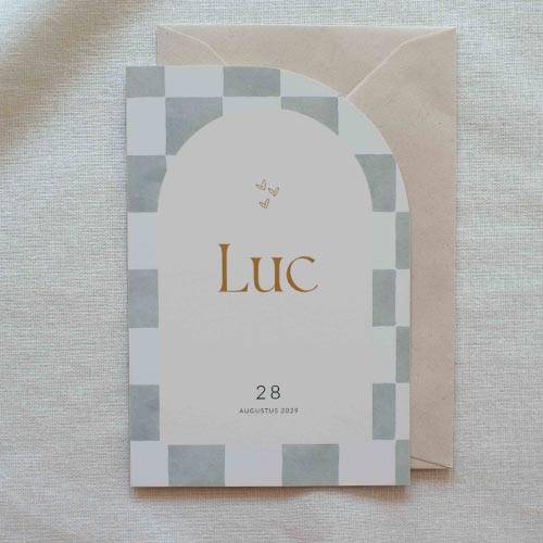 Geboortekaartje jongen geblokt pastel groen