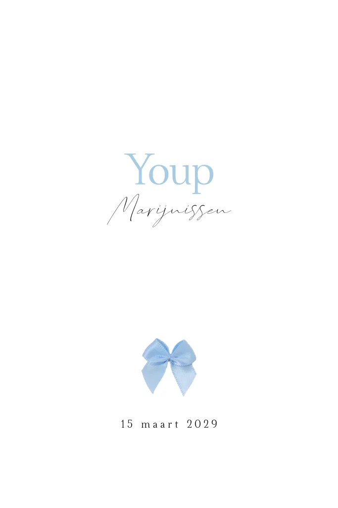 Geboortekaartje klassiek in stijlvolle ovale vorm. De strikjes bestel je er los bij.