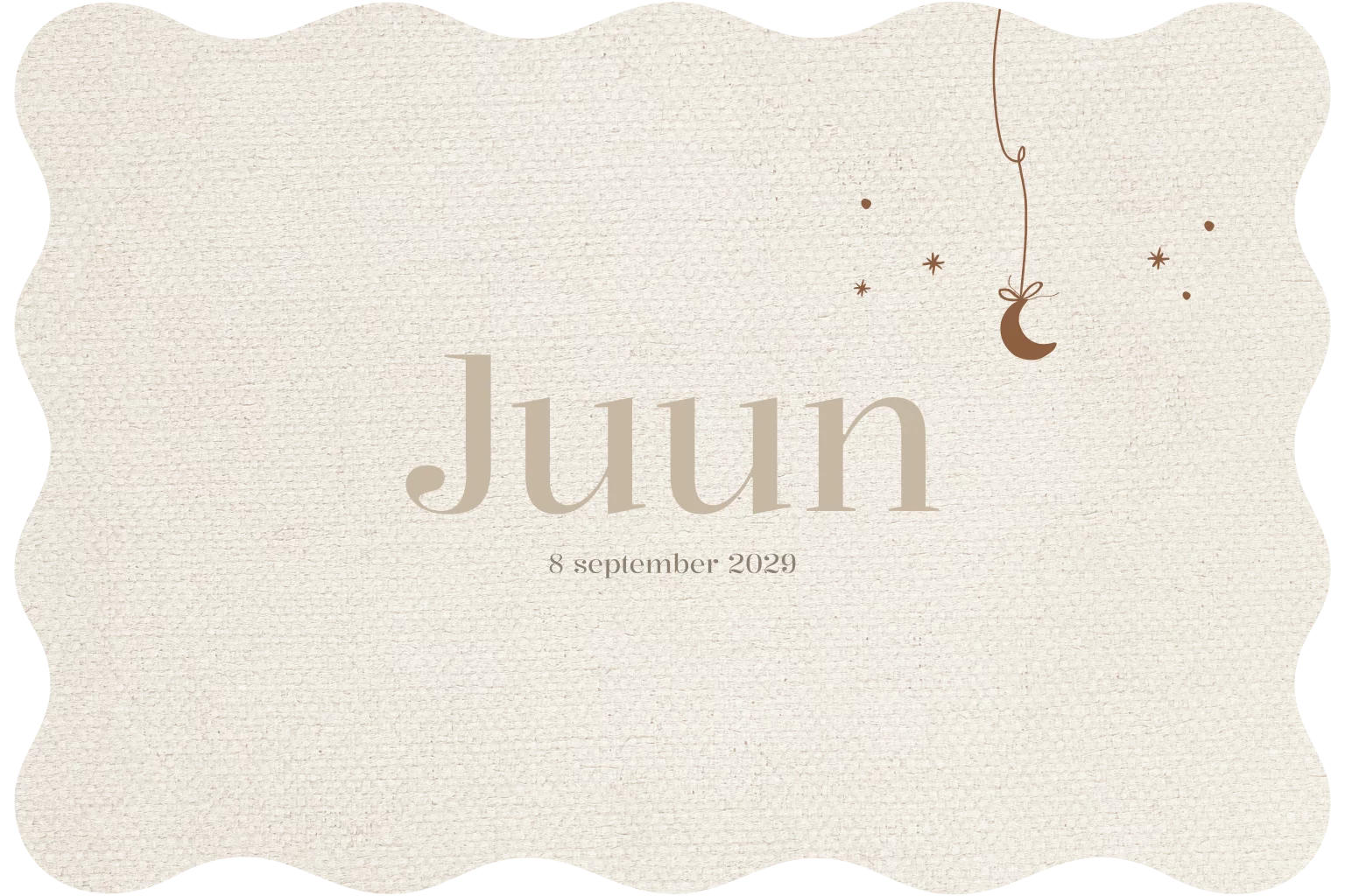 Lief en neutraal geboortekaartje voor een meisje met maan en sterretjes. De achtergrond heeft een linnen look structuur.
