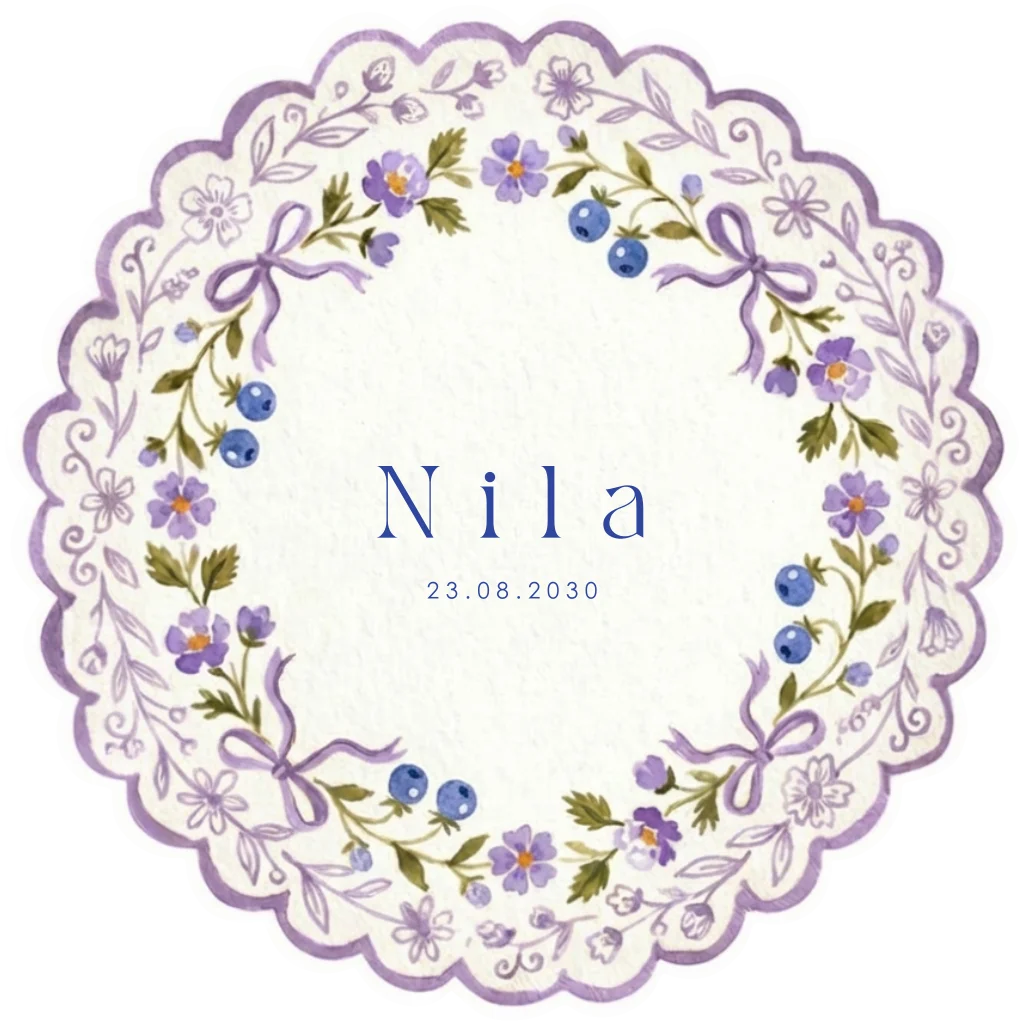 Zomers geboortekaartje voor de meisjes. Met lila bloemen en blauwe besjes. Perfect voor de baby's die geboren worden in de lente of zomer.