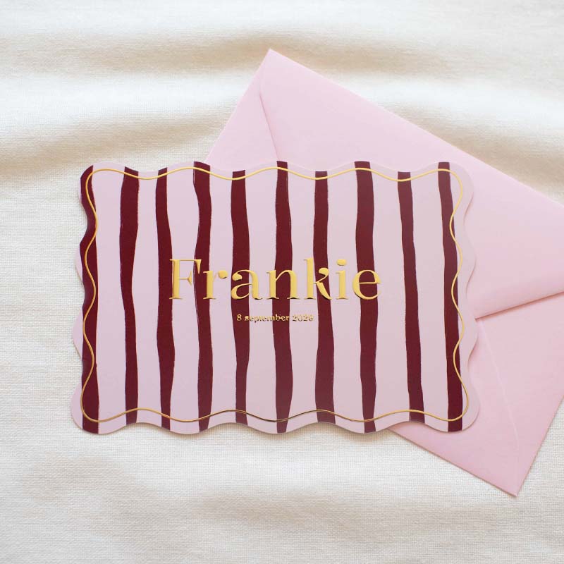 - Marloes“Ruime keuze uit geboortekaartjes die passen bij het seizoen, heel fijn dat je ze zelf kan aanpassen naar smaak. We hadden alles klaar staan en hoefde alleen nog geboorteinfo aan te passen. Daardoor waren de kaartjes al op dag 3 na de geboorte in huis! Superfijn.”