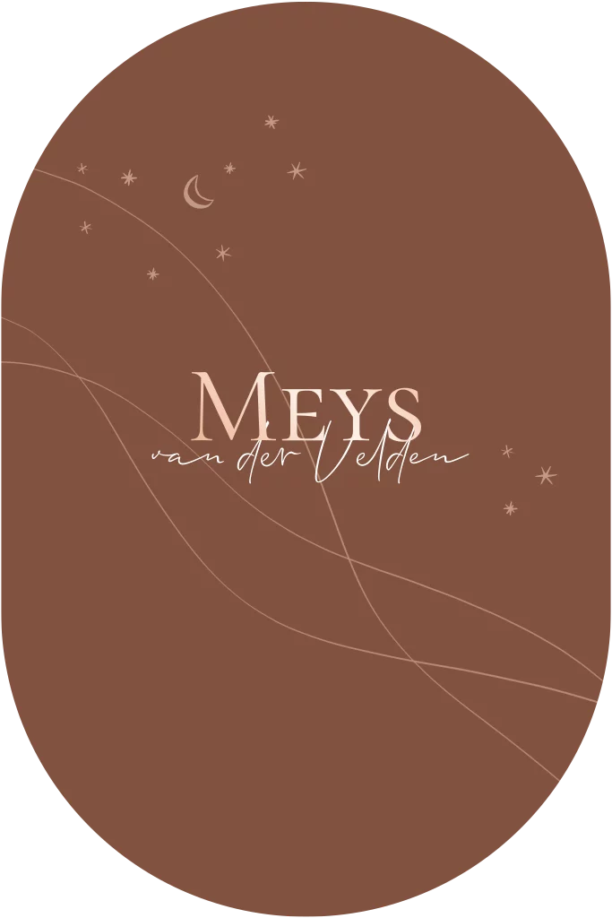 Geboortekaartje in een unieke vorm met minimalistische bergen en een sterrenhemel.
