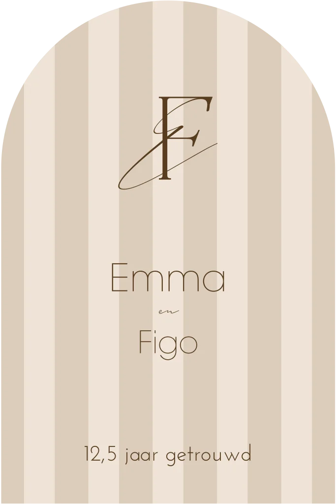Kaart in boogvorm voor een huwelijksjubileum van 12,5 jaar, met beige en bruine tinten. Mail ons voor een persoonlijk monogram van jullie voorletters.