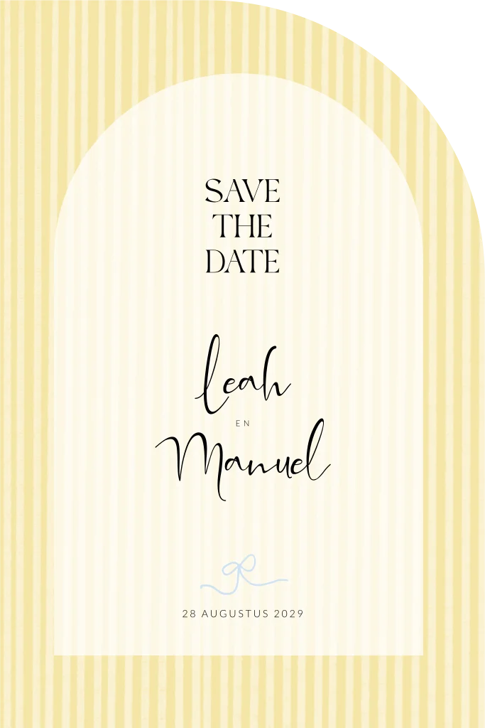 Hippe Save the Date kaart met Franse vibes. De kleuren lichtgeel en lichtblauw geven deze mediterraanse kaart een romantische en zwoele uitstraling. Bekijk ook de bijpassende trouwkaart set!