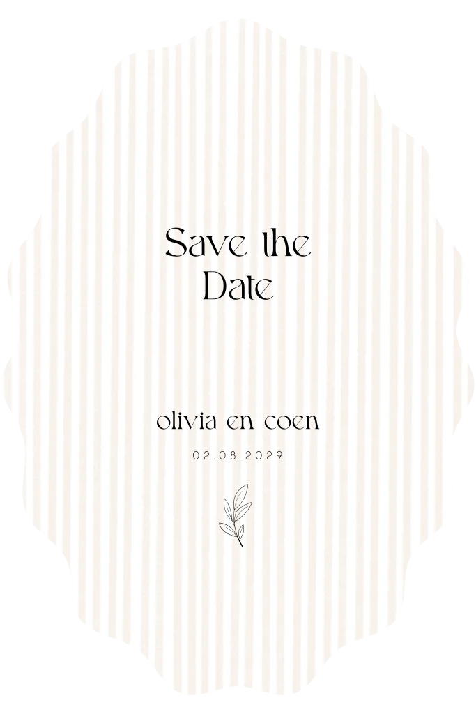 Elegante Save The Date kaart met gestreept beige design, bewerk eenvoudig in onze online editor.