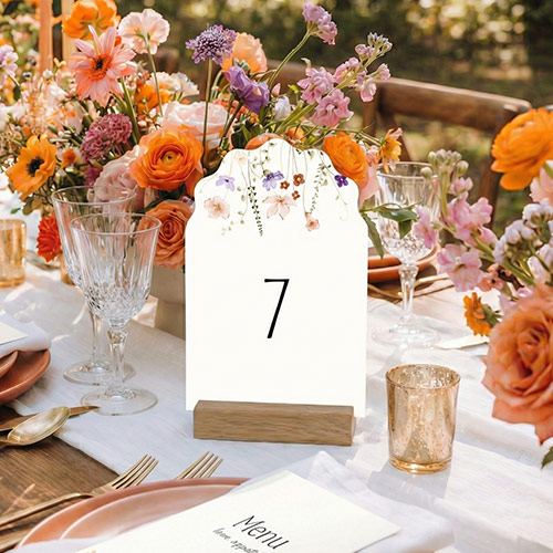 Tafelnummer voor tijdens het bruiloft diner. Een kaart met gekleurde veldbloemen in pastel tinten. Passend bij een bruiloft met Garden Party thema.| Proefdruk | vanaf 2,50 | |||||||||||||||||||||||||