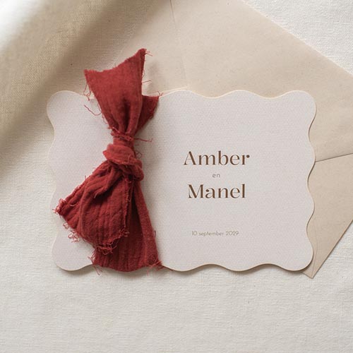 Trouwkaart met lint strik linnen schulprand