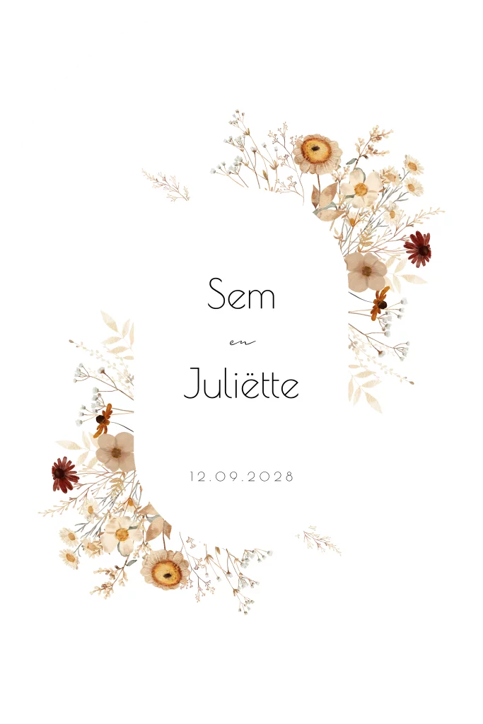 Trouwkaart ovaal bloemenkrans aardetinten
